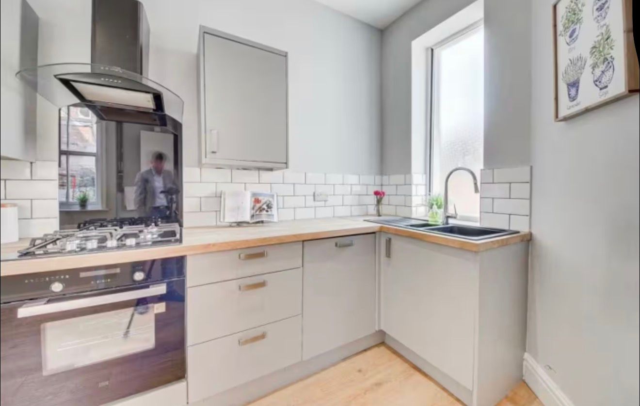 It is fully equipped with a Samsung fridge-freezer, microwave, gas hob, single oven, kettle, toaster, and Nespresso coffee machine, along with cooking pots, pans, and essential utensils.